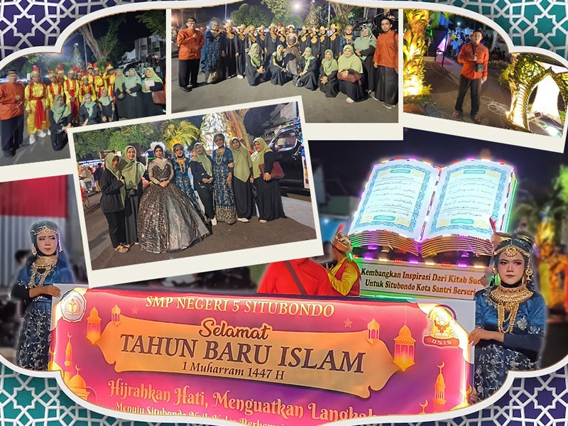 Situbondo, 30 Juni 2025. Dalam rangka menyemarakkan peringatan Tahun Baru Islam 1 Muharram 1447 Hijriah yang jatuh pada tahun 2025 Masehi, SMP Negeri 5 Situbondo turut berpartisipasi dalam kegiatan Pawai Lampion yang diselenggarakan oleh Pemerintah Kabupaten Situbondo. Kegiatan ini diikuti oleh berbagai instansi pendidikan, mulai dari tingkat SMP/MTs se-Kabupaten Situbondo.